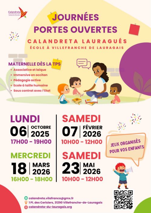 Venez découvrir l’école Calandreta Lauragués, son projet éducatif immersif en occitan, et rencontrer l’équipe enseignante et les parents.